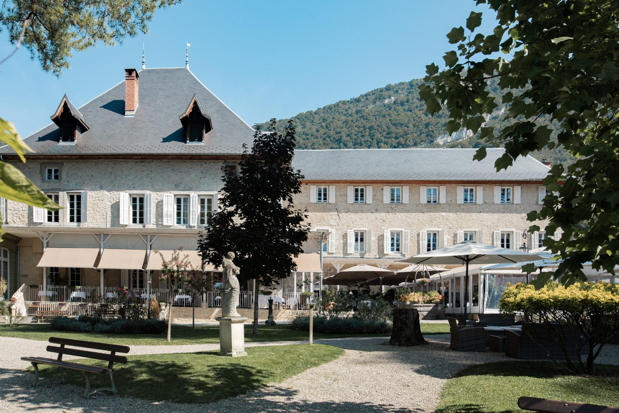 Une maison élégante à l’ambiance intimiste, restaurant gastronomique, espace bien être et jardin aménagé.