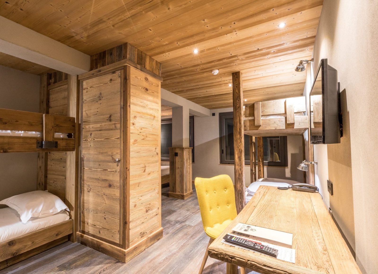 Des chambres pensées comme les authentiques cabanes de notre enfance, où le bois est omniprésent. Il est associé à la pierre et à des touches de couleurs délicates pour offrir une ambiance naturelle et douce, emblématique d’un certain art de vivre.