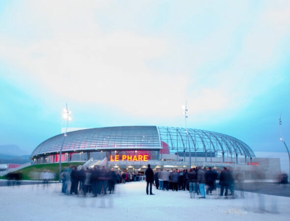 Le Hall E avec sa tribune rétractable, le Phare et sa boîte noire…