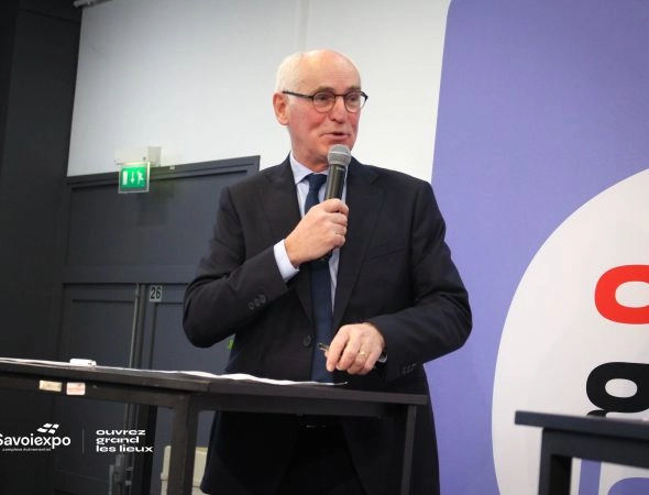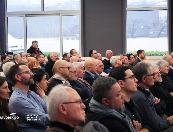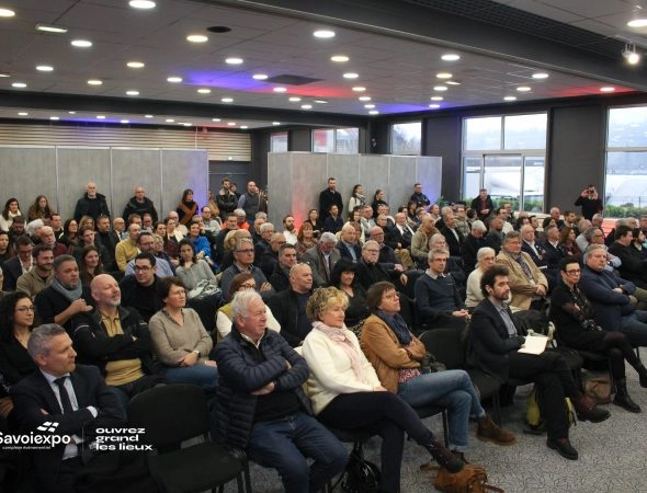 Ce vendredi 23 janvier 2026, Pascal Barcella, Président de Savoiexpo, a présenté ses vœux à un parterre d’invités, venus nombreux, découvrir le programme du complexe événementiel 2026 et les phases de travaux à venir.