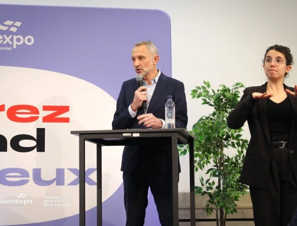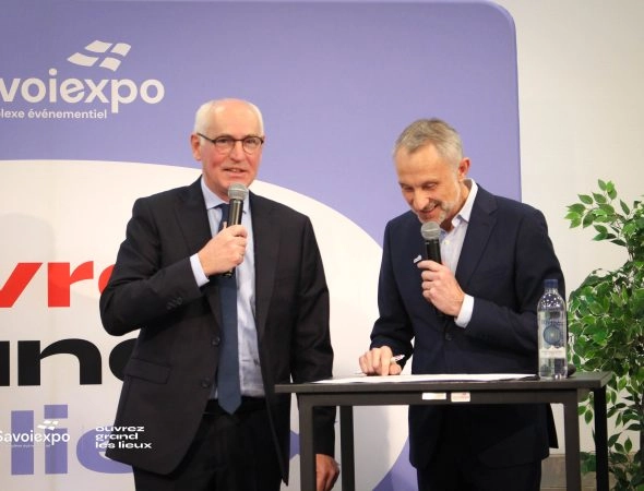 Le vendredi 9 janvier 2026, Fabrice Pannekoucke, Président de la Région Auvergne-Rhône-Alpes, et Pascal Barcella, Président de Savoiexpo, ont présenté les prochaines phases de travaux à venir sur le complexe événementiel de Chambéry. Une nouvelle marche à franchir pour SAVOIEXPO pour renforcer l’attractivité et le développement du site.