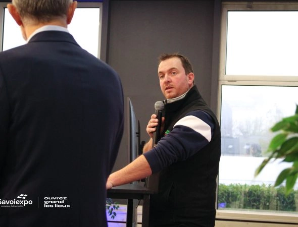 La présentation s’est conclue par une séquence teintée d’émotions puisque c’est Patrick Francony, actuel responsable d’exploitation chez Savoiexpo Evénements et qui a évolué à différents postes chez Savoiexpo depuis 1988, qui partira en retraite d’ici quelques semaines. Cette présentation fut l’occasion pour Pascal Barcella de remercier Patrick Francony pour son engagement pendant ces 38 années de collaboration et de présenter celle qui lui succèdera, Alysé Halak.